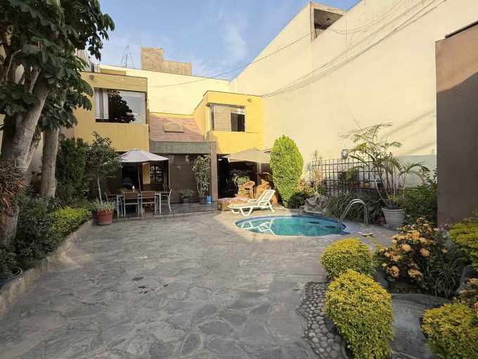 El área exterior es ideal para reuniones y momentos en familia: jardín amplio, terraza techada con zona de parrilla, piscina con catarata y baño completo para la zona de piscina.
