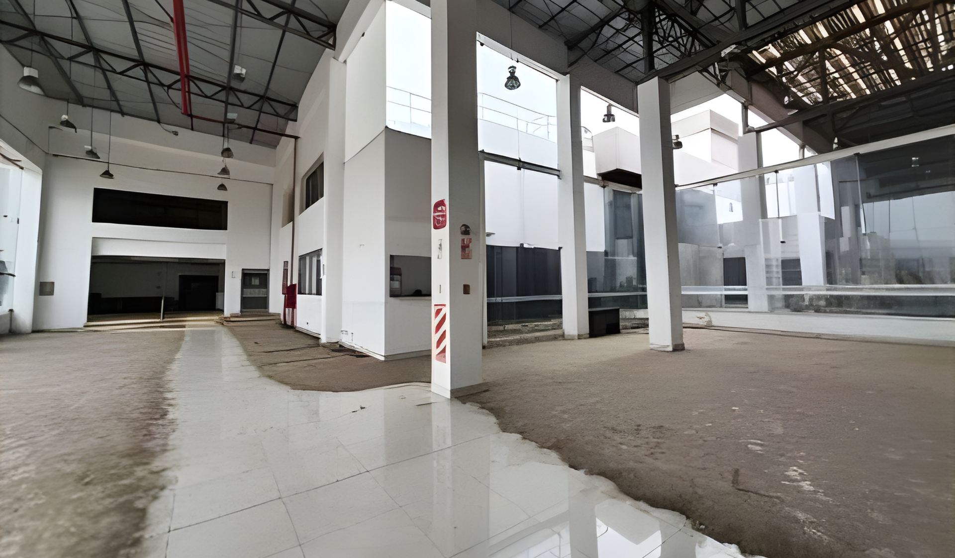 Edificada con Dry Wall los cerramientos laterales y el techo es de estructura metálica con cobertura de calamina.