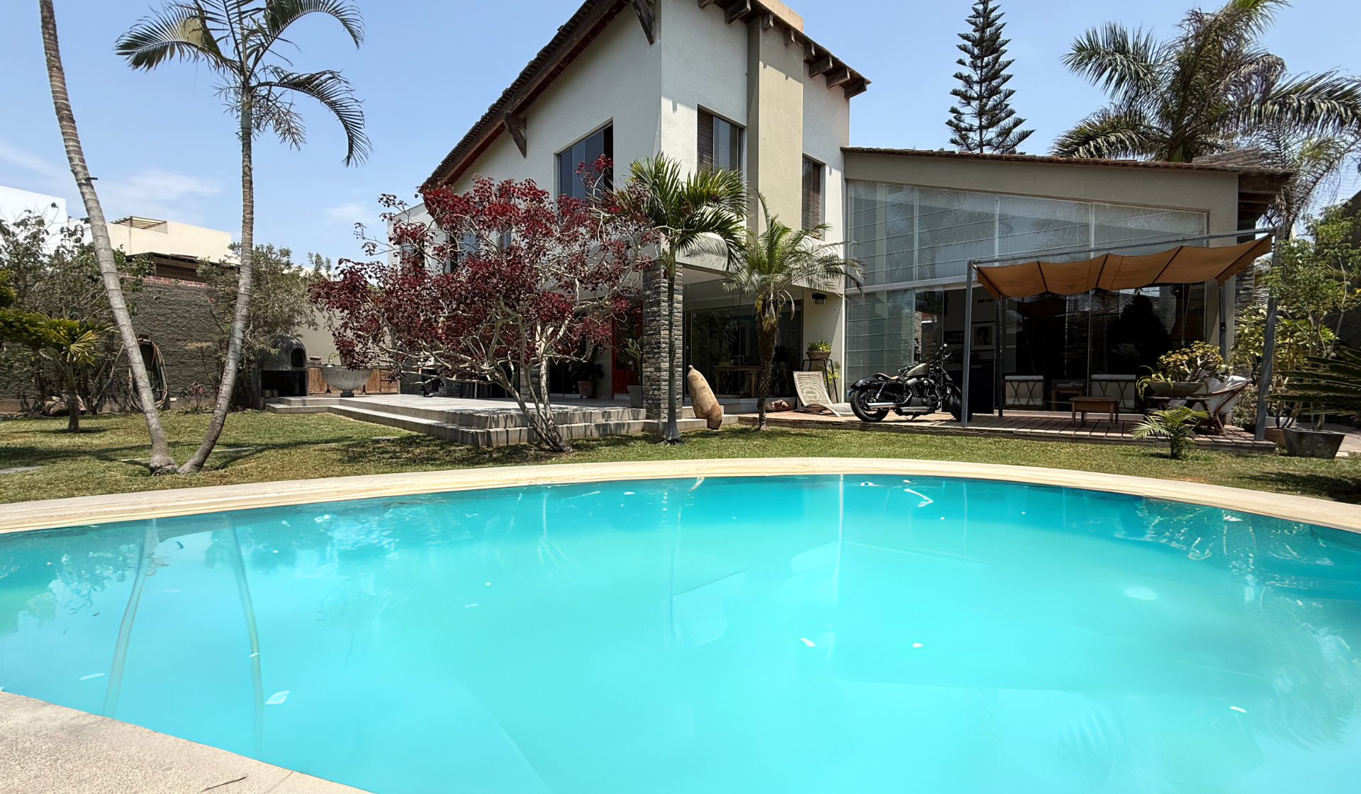 – Jardín frontal interno y gran jardín posterior con piscina