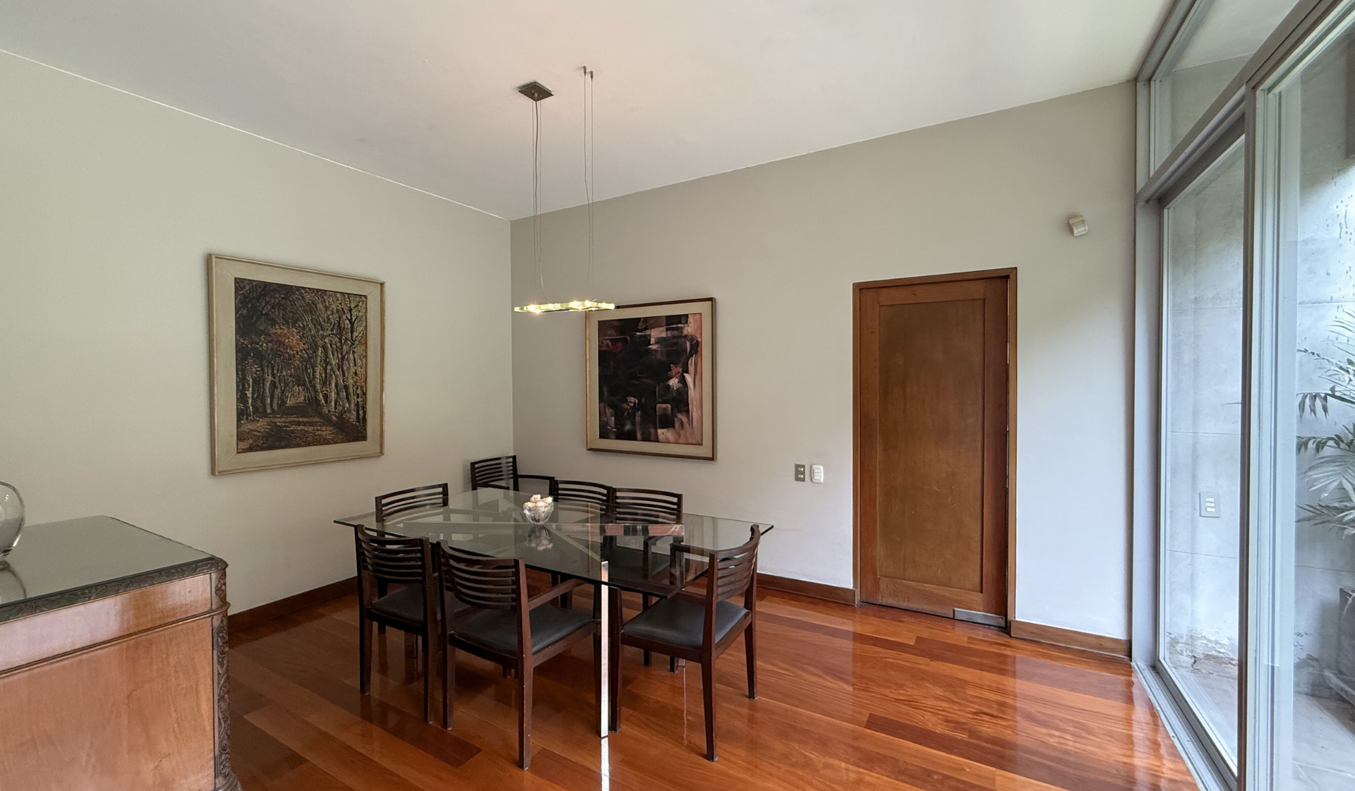 La casa tiene pisos de madera en el área social y privada, lo que aporta calidez y elegancia en todos los ambientes.